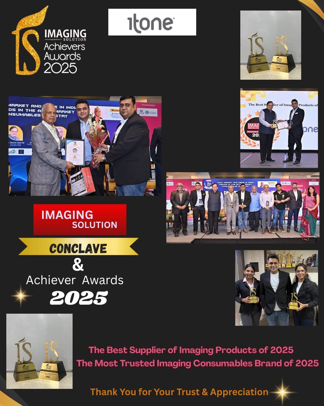 #tbt to the time when Itone (India) Pvt. Ltd won the Most Trusted Brand & Best Quality Toner Brand in the year 2022. We’re grateful to everyone who has been a part of our journey.